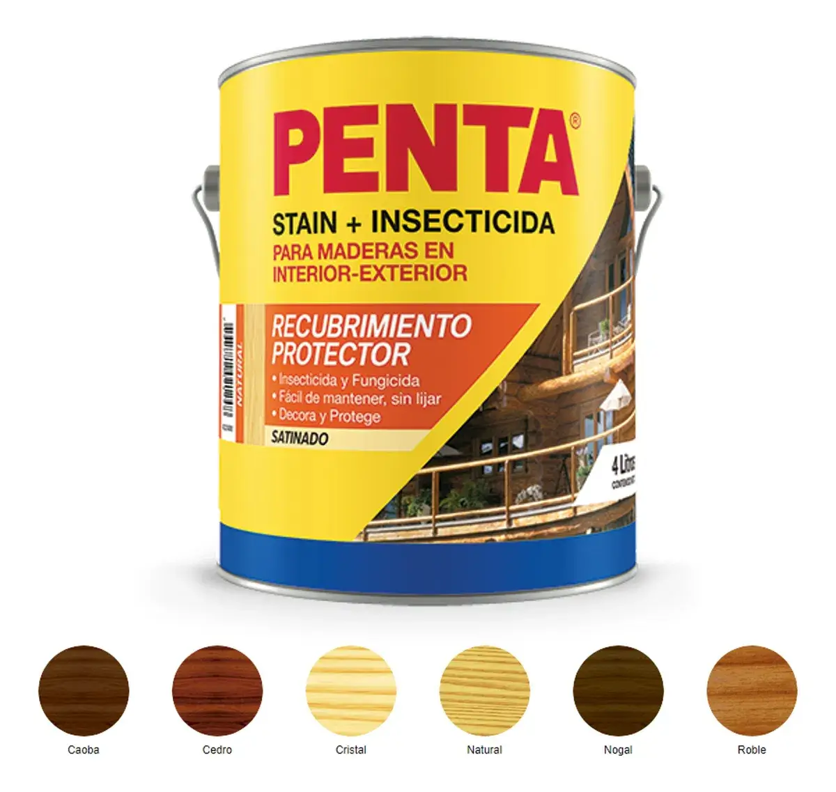 Perfecto para hogares, oficinas y espacios exteriores, el Penta Stain no solo mejora la apariencia de tus superficies, sino que también actúa como una barrera contra los insectos, contribuyendo a un entorno más limpio y saludable.